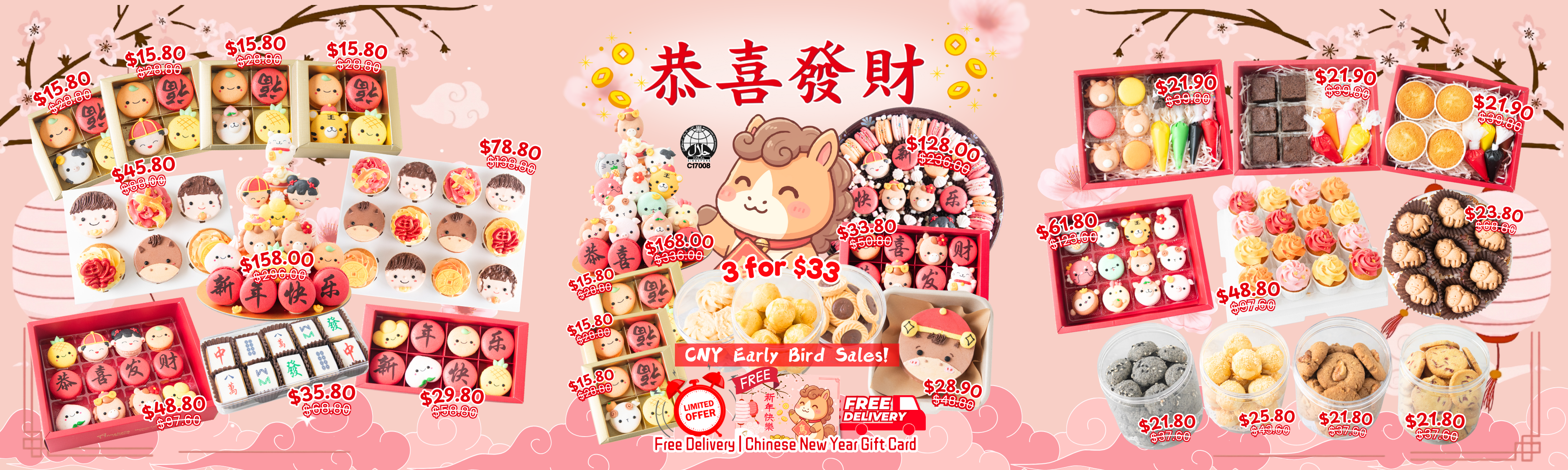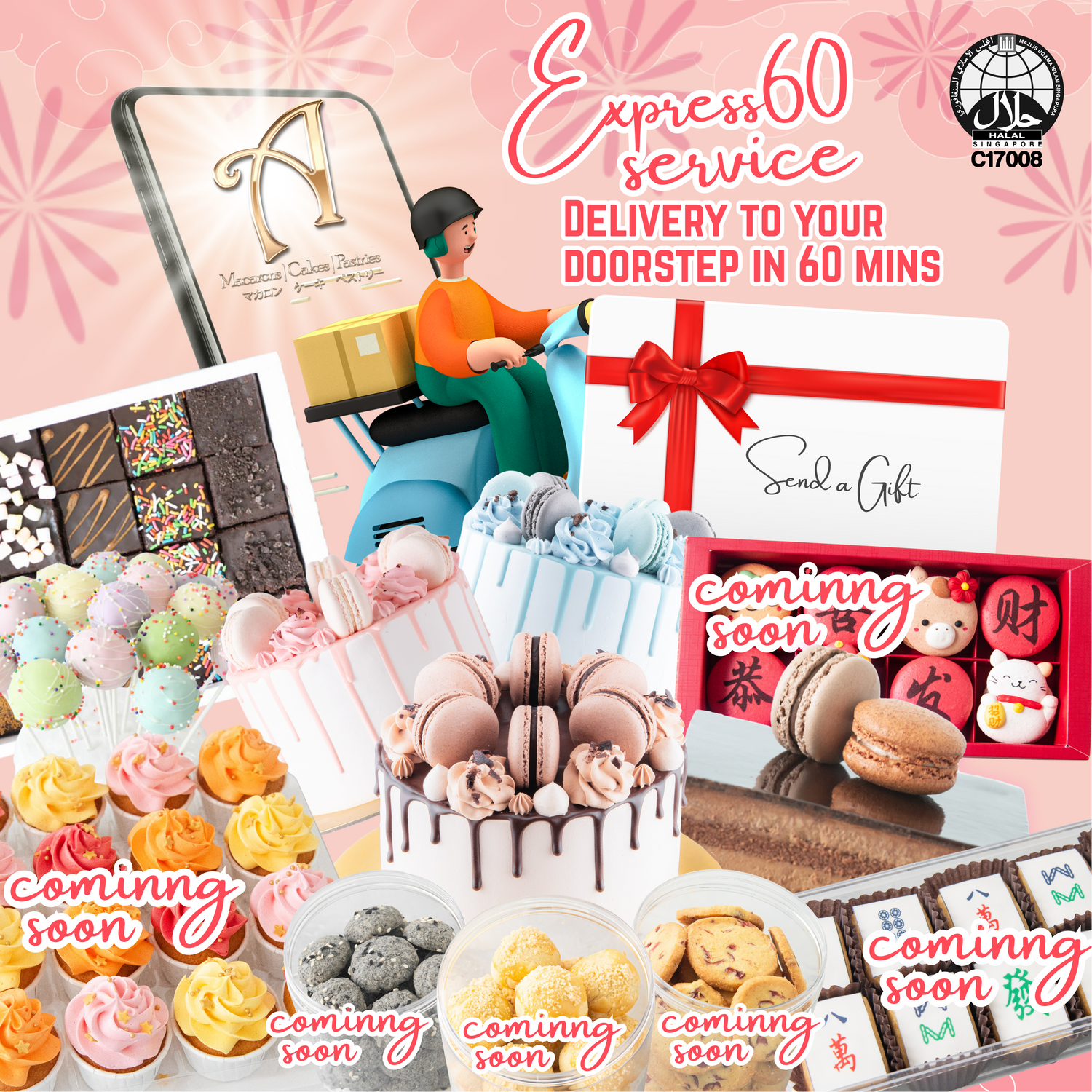 Birthday Cakes & Macarons Gift Box, Door Gifts Products, 9am-6pm daily. FREE with S$120 purchase (u.p. $18) ^Peak $100-150 ($28) Code:EXPRESS60