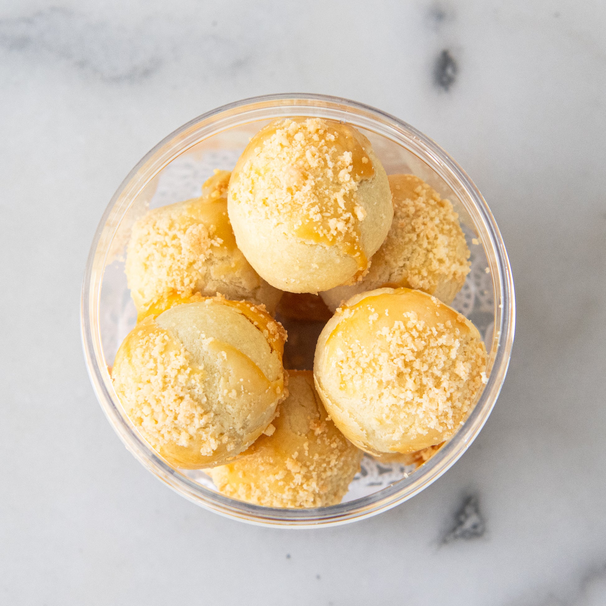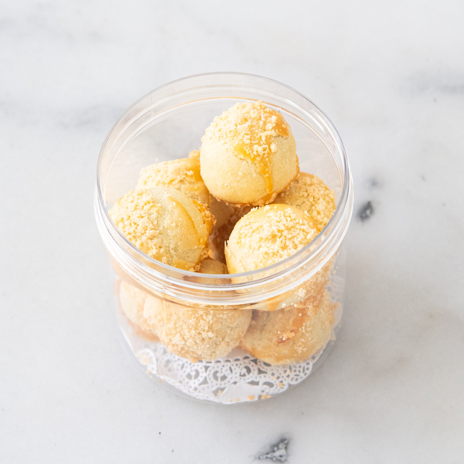 Welcome good fortune this Chinese New Year with our Pineapple Tarts! Shaped into elegant golden balls, these buttery pastries are filled with a tangy, luscious pineapple jam, symbolizing wealth and prosperity. Presented in a festive container, they’re an ideal gift or treat to share with loved ones. Celebrate the season with this timeless classic, perfect for spreading joy and sweetness!