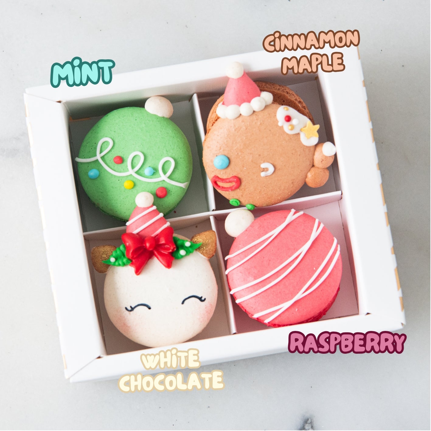 Add a sprinkle of magic to your holiday season with our 4in1 Magical Merrycorn Macaron set! Featuring four adorable Christmas-themed macarons — including a jolly unicorn, a gingerbread narwhal, and festive jingle bells — these sweet treats are as charming as they are delicious. Perfect for gifting or indulging yourself, they bring festive cheer in every bite!