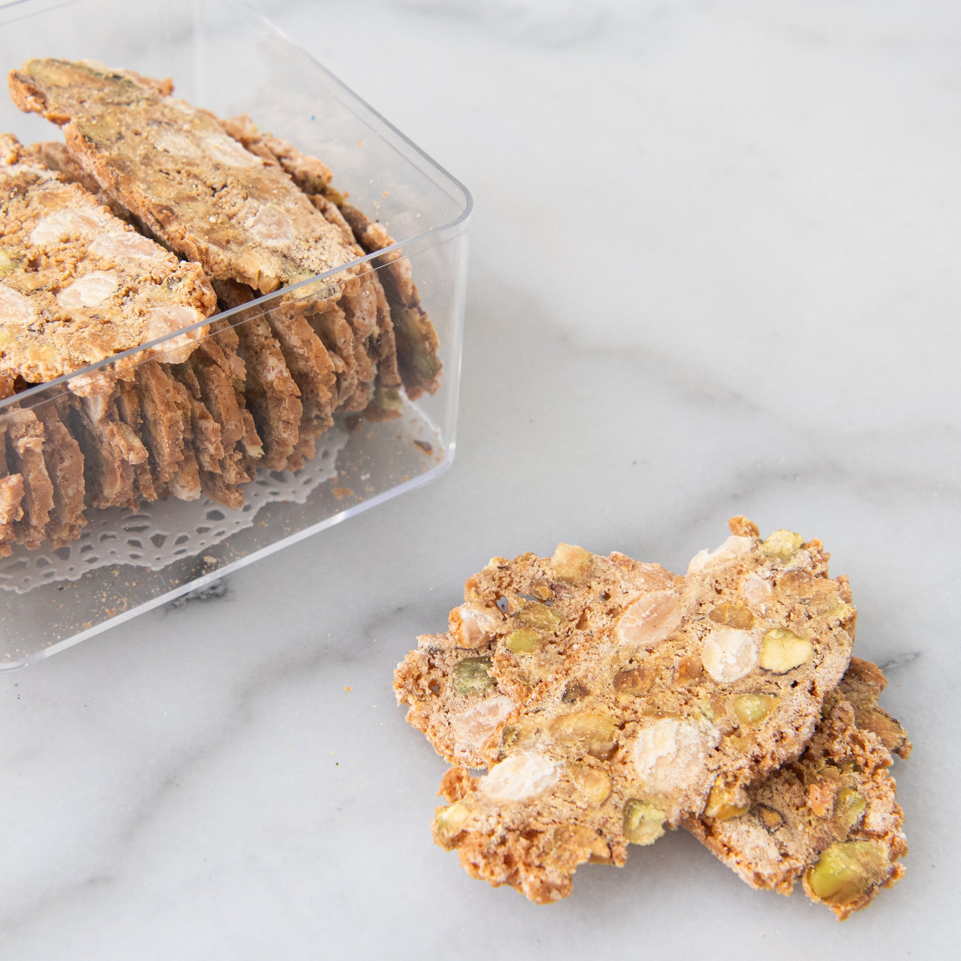 Indulge in the delightful crunch of our Pistachio Biscotti, a perfect blend of nutty flavor and satisfying texture. Each piece is carefully baked to achieve a golden crisp, making it an ideal companion for your morning coffee or afternoon tea. With real pistachios folded into the dough, these biscotti offer a unique taste experience that will leave you craving more. Enjoy them as a snack or share with friends for a delightful treat!
