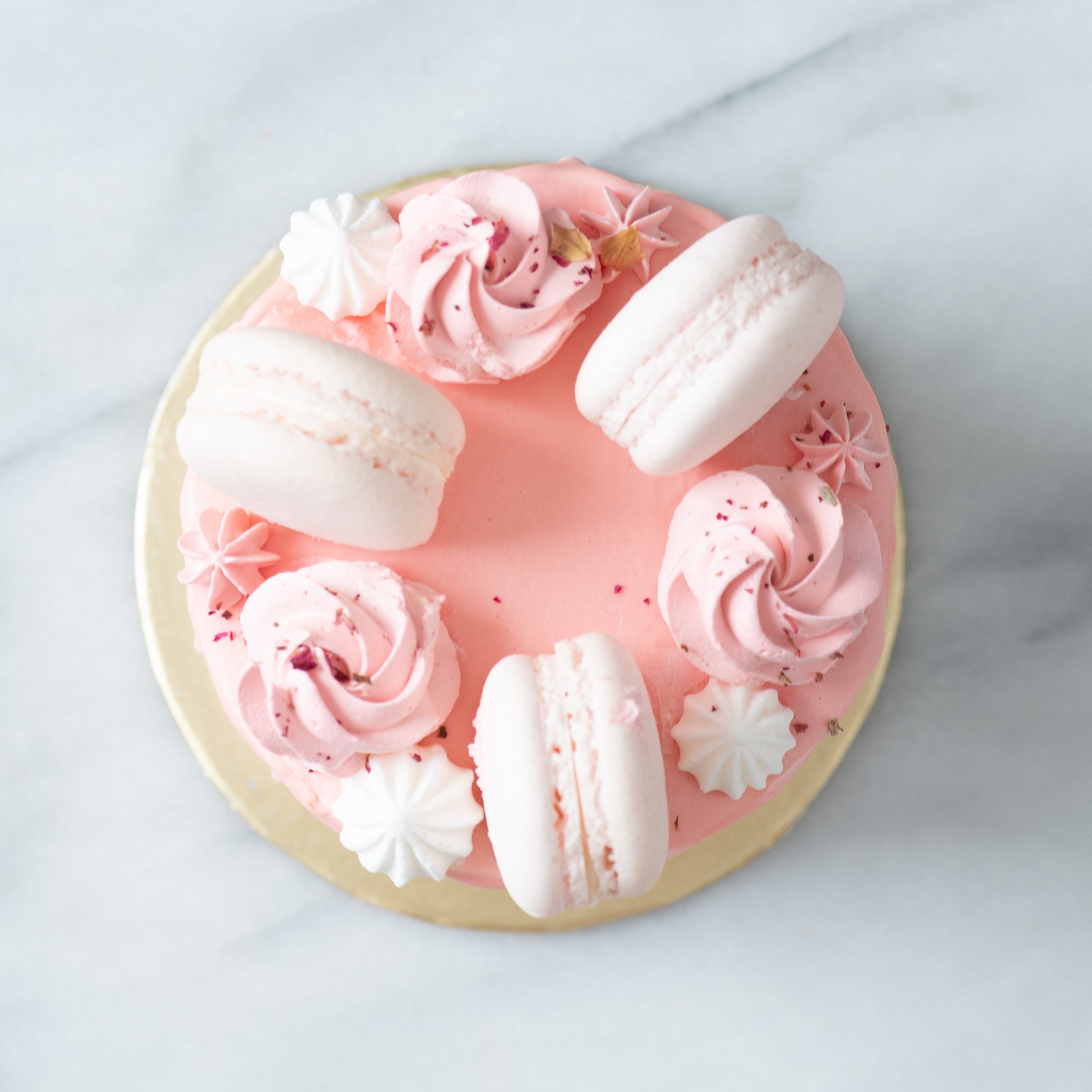 Sales! Lychee Rose Cake Petite | Including 3 pcs Macarons | $35.80 nett only