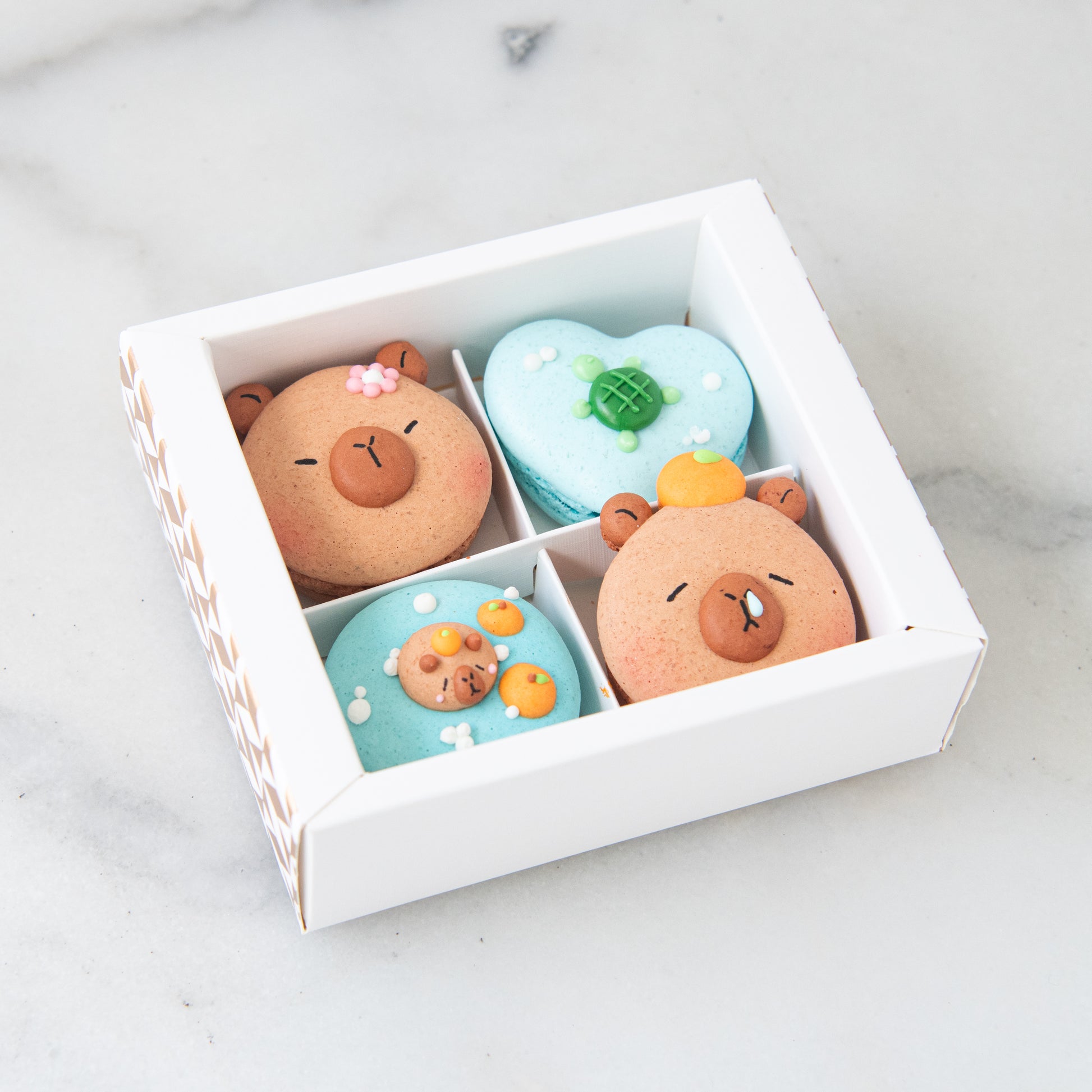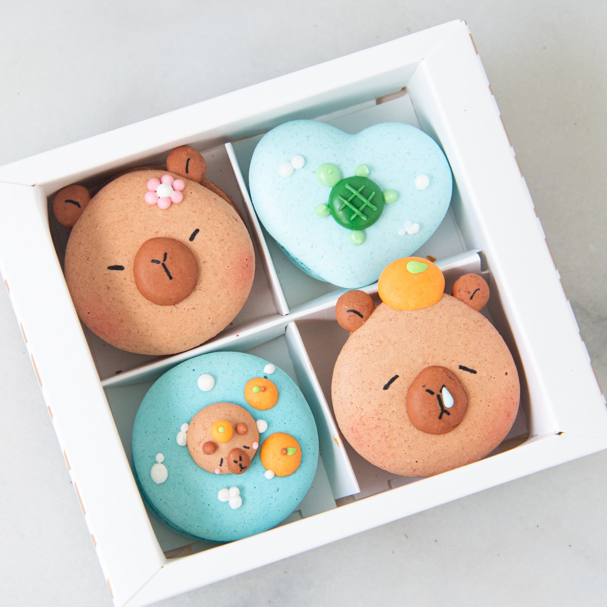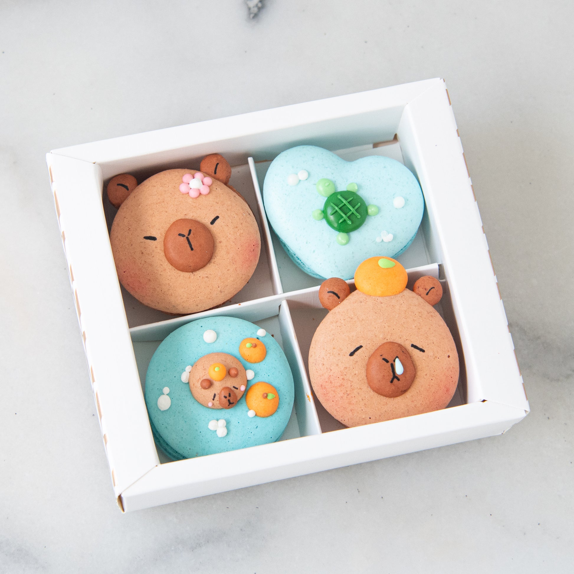 The capybara macarons are so cute and very enjoyable to eat.