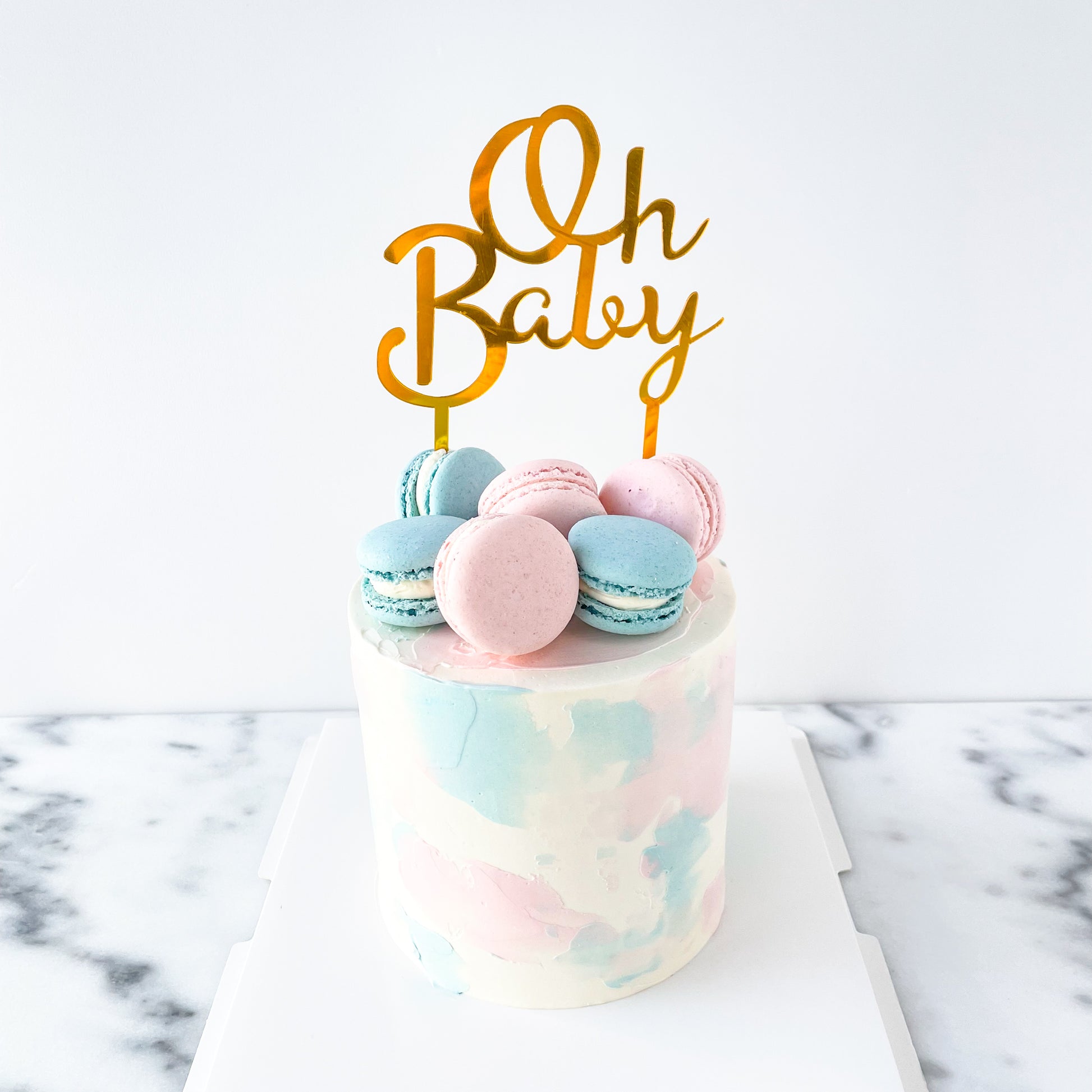 Customized Cake - Gender Reveal Marbled Cake W Macaron