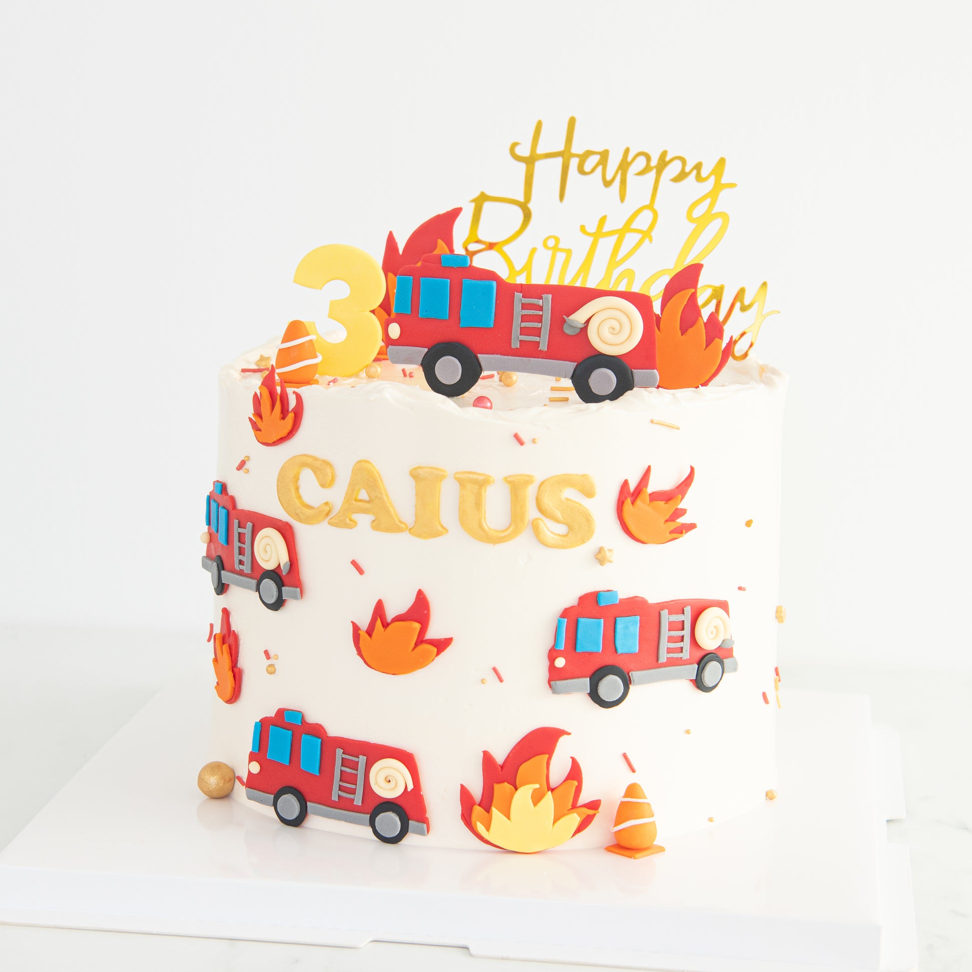 A firetruck-themed cake is sure to be a showstopper at any celebration! A meticulously crafted cake complete with intricate details. This cake is perfect for a birthday party for a little one who dreams of becoming a hero, or for honoring the brave firefighters in your life. With its bold colors and fun design, a firetruck-themed cake is not only a tasty treat but also a fantastic centerpiece that will bring joy and excitement to all your guests. It's a wonderful way to add a touch of creativity and fun to any special occasion!