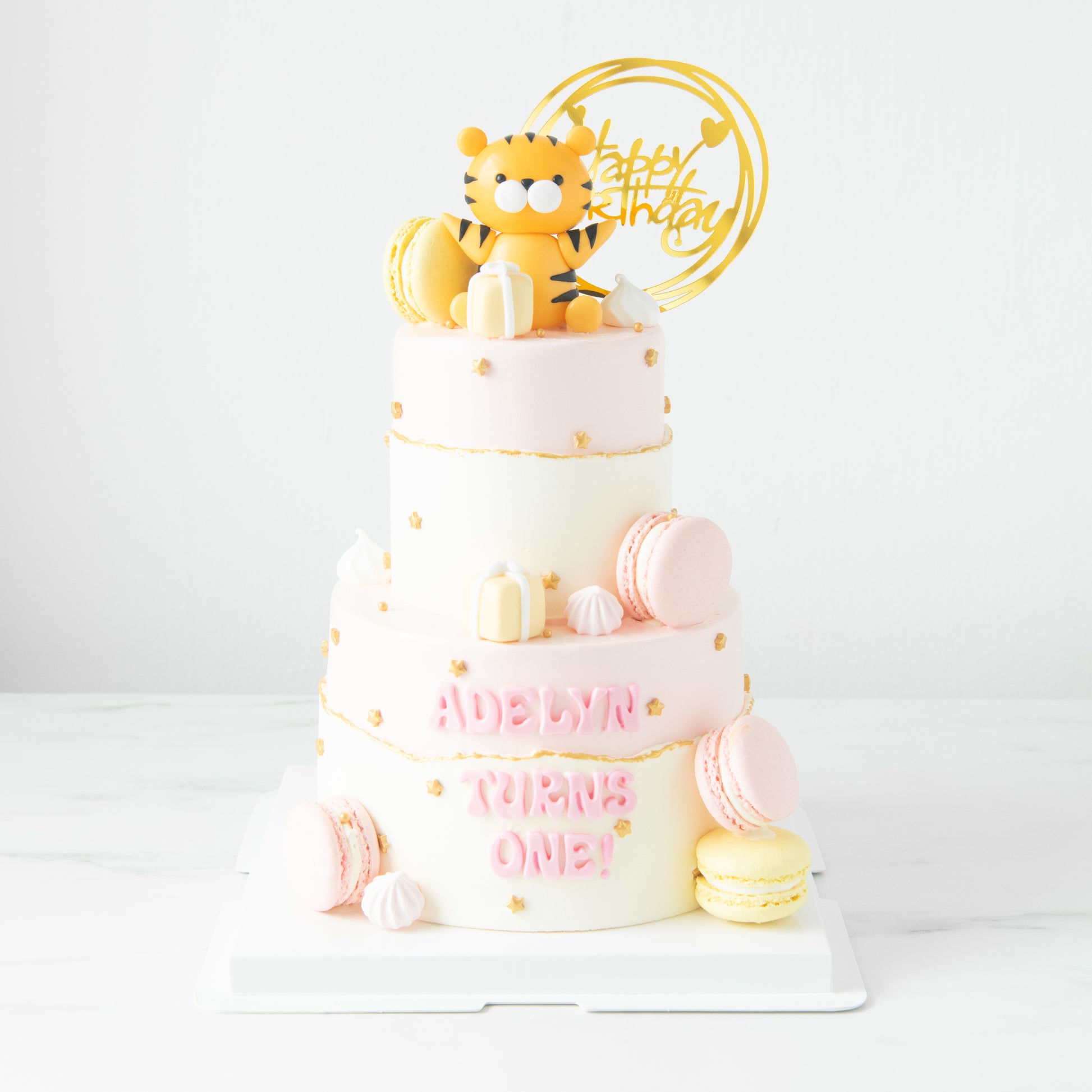 An adorable and charming cake, featuring an eye-catching tiger with its vibrant orange and black stripes. Perfect for birthdays, jungle-themed parties, or any joyous occasion! This outstanding cake is sure to be the highlight of the event, impressing everyone with its charming features.