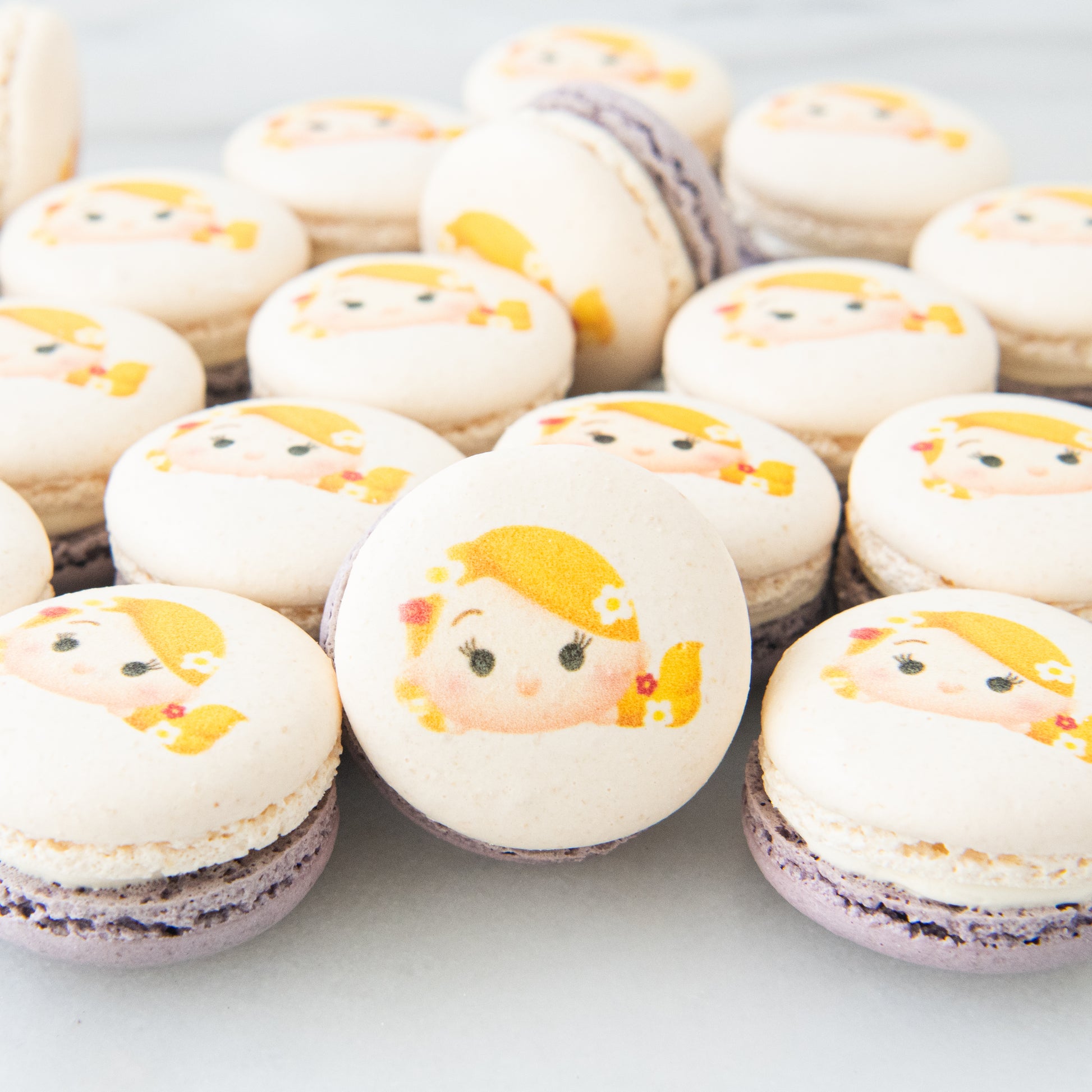 Bring a touch of Disney magic into your life with the 20 pieces Rapunzel Macaron set. Whether you're a Disney fan or simply appreciate the artistry of these beautifully crafted macarons, this set is a must-have for anyone who loves all things Disney Princess. Treat yourself to a taste of enchantment with these delightful macarons inspired by the one and only Rapunzel.