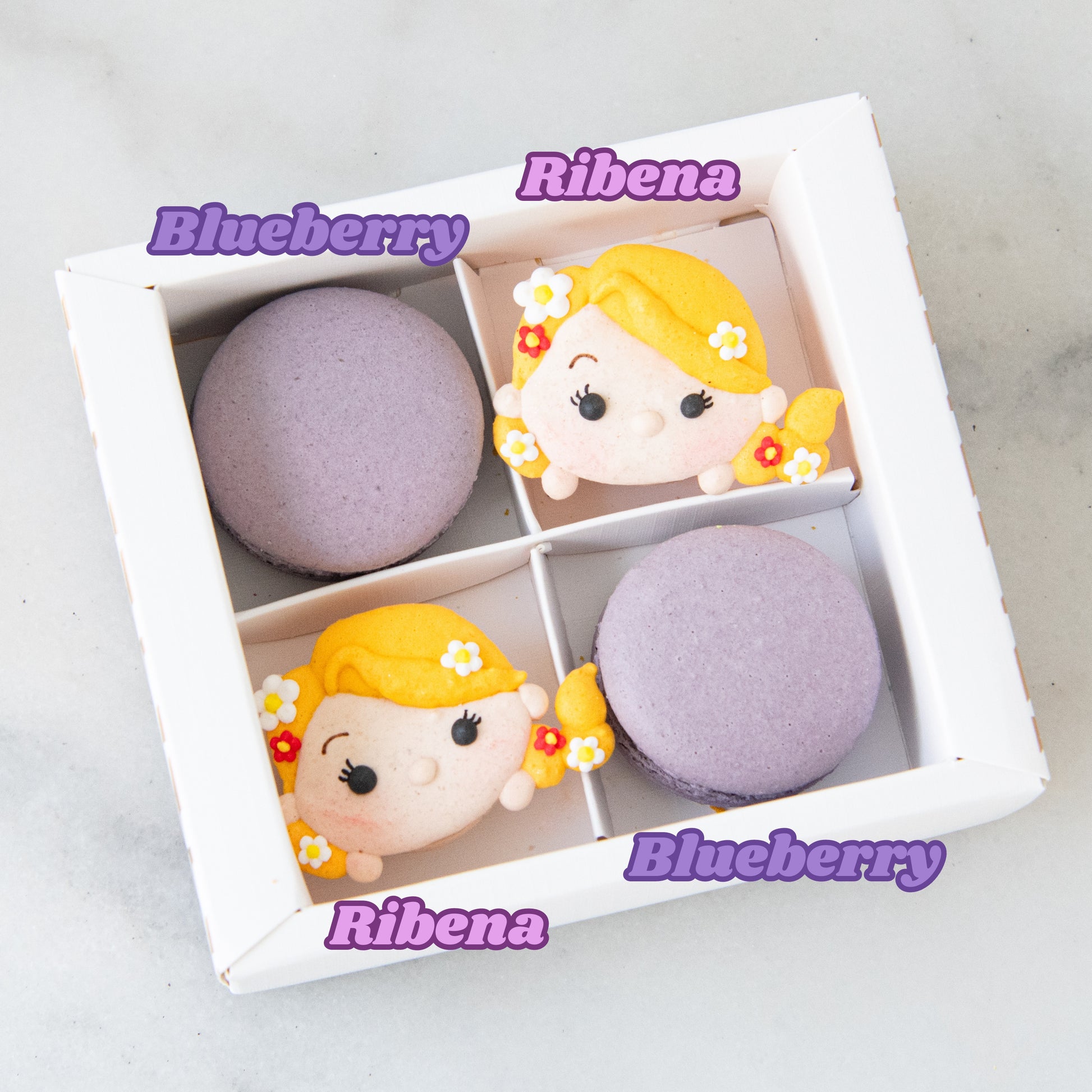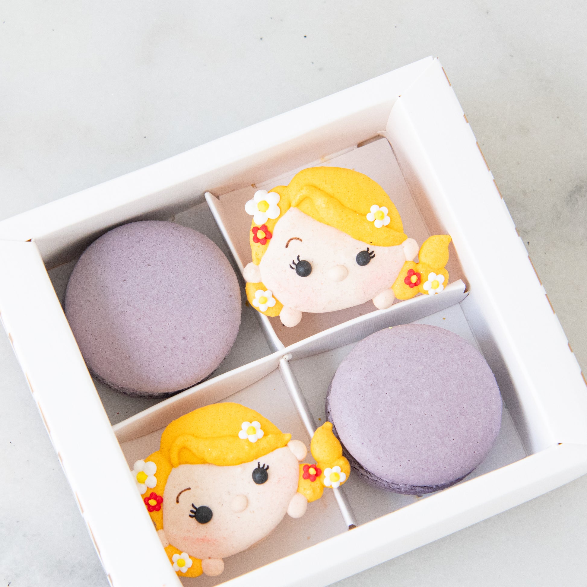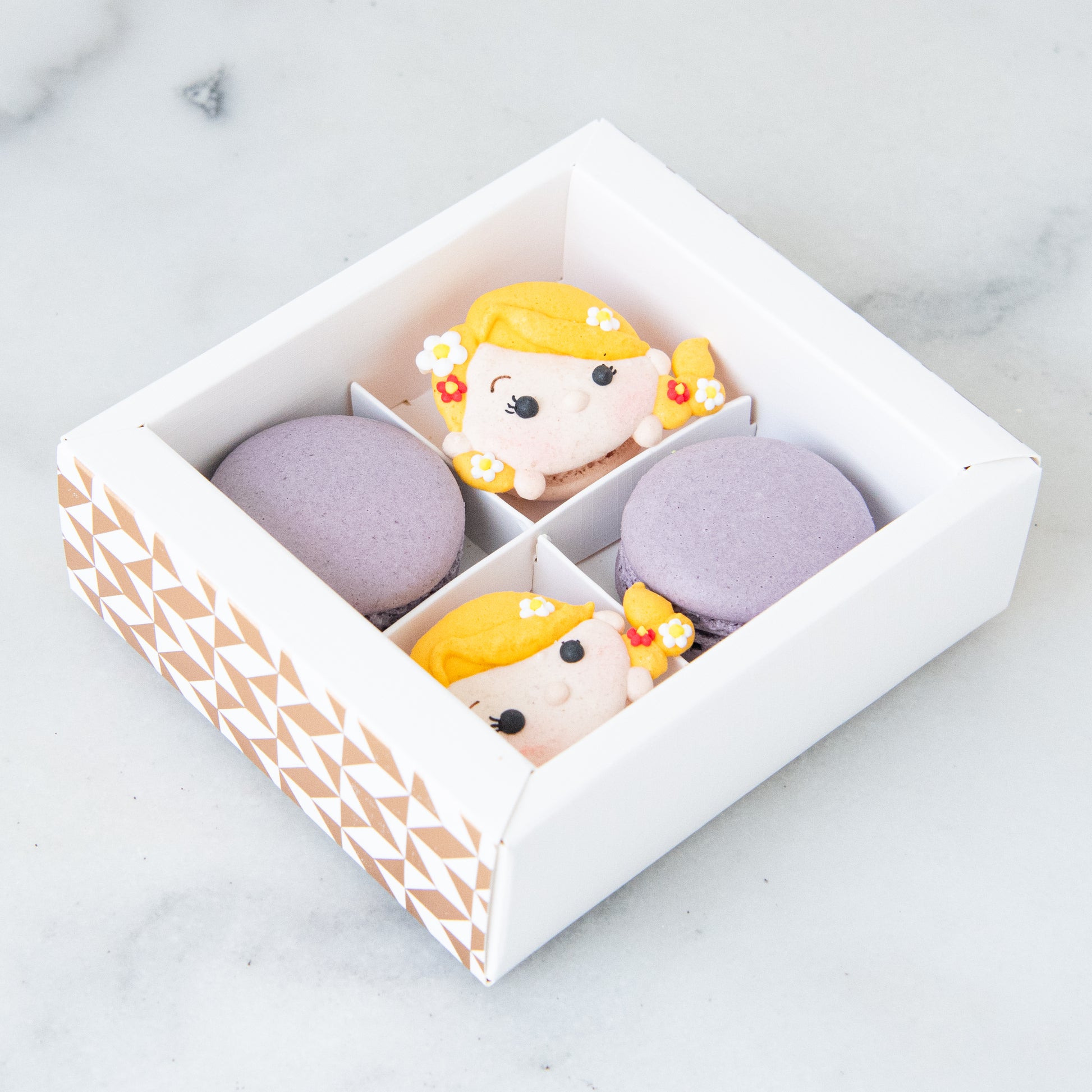 Whether you're a fan of Princess Rapunzel, or simply love indulging in delicious macarons, our 4 pieces Rapunzel Macaron box is the perfect choice for you. Treat yourself to a taste of magic with these delightful treats, or surprise a loved one with a gift that is sure to bring a smile to their face. Order your box of Rapunzel Macarons today and experience the joy of indulging in a sweet and enchanting treat!