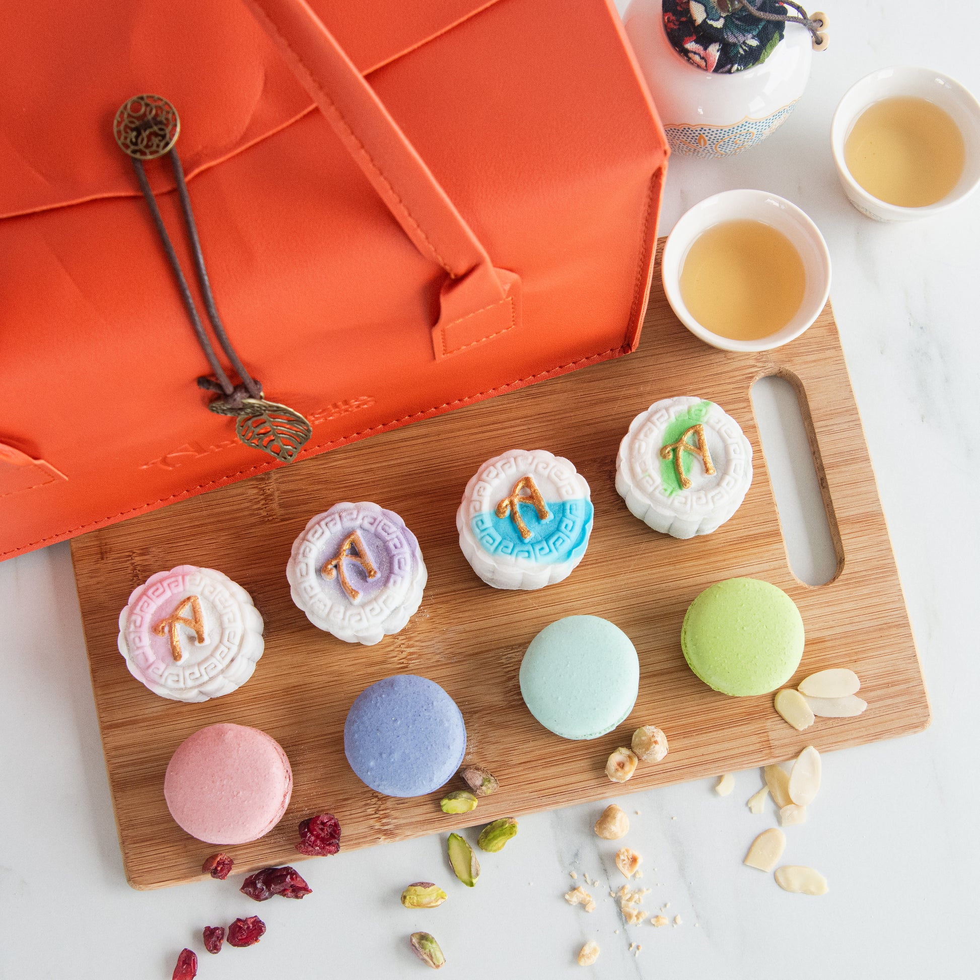 Each set comes with gift box and 4 pcs of snow skin mooncakes and 4 pcs of macarons:
