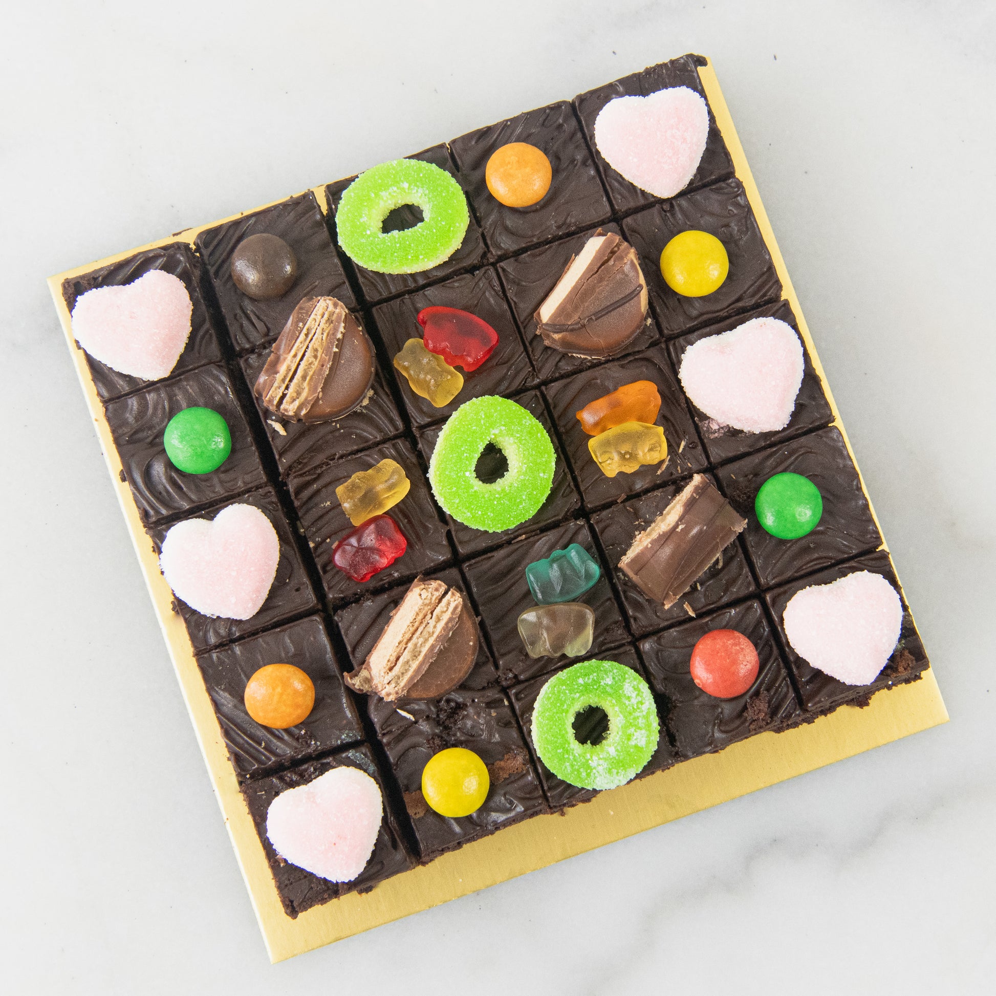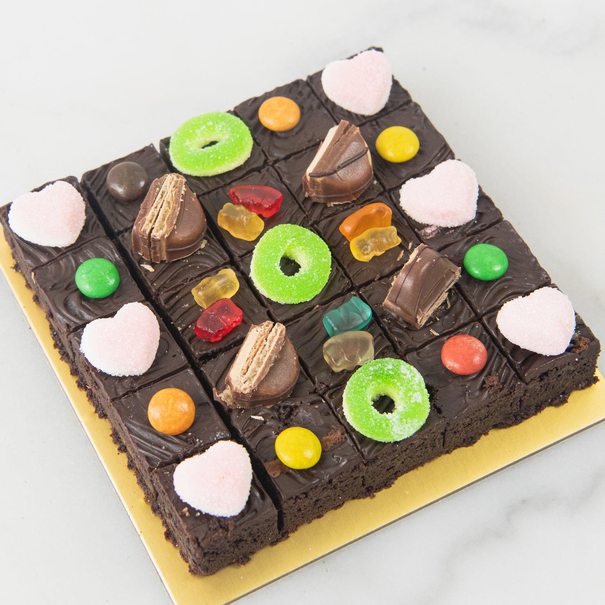 Picture is for illustration purpose, the actual toppings on the brownies may be different.