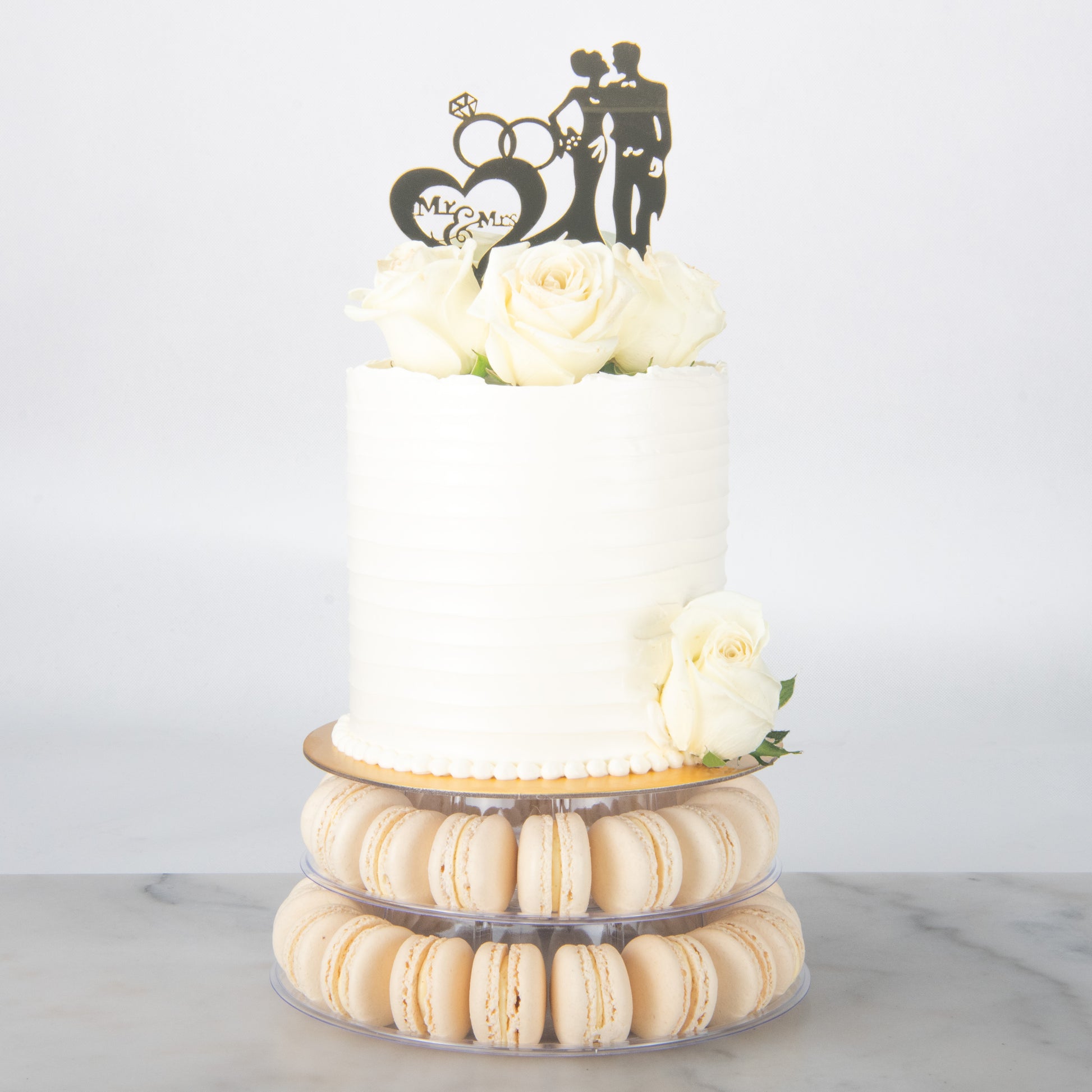 Wedding Cake- Classic White Wedding Macaron Tower Cake – 40 Macarons & Fresh Roses